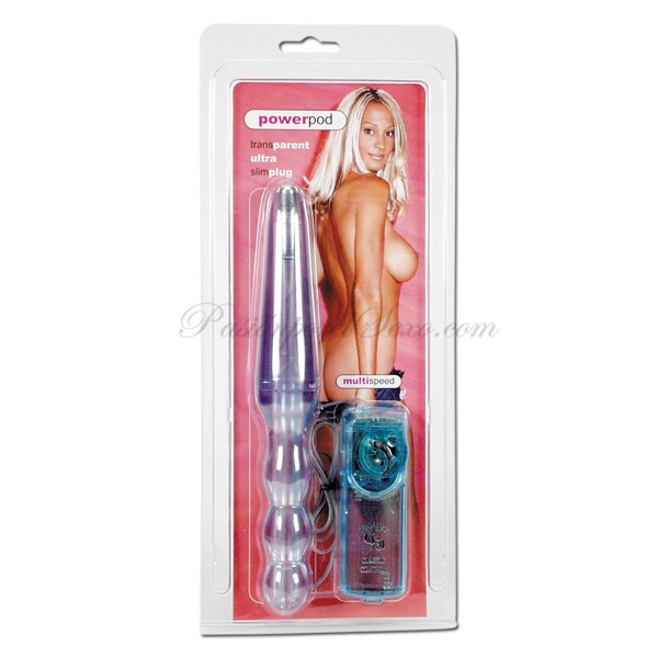 Plug transparente con vibraciónr regulable. Utiliza 2 pilas de 2AA (no incluídas).Composición principal: PVC y plástico de ABS.
