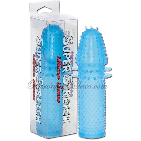 Funda para el pene de silicona azul con estriaciones, que proporcionan más placer a la mujer.