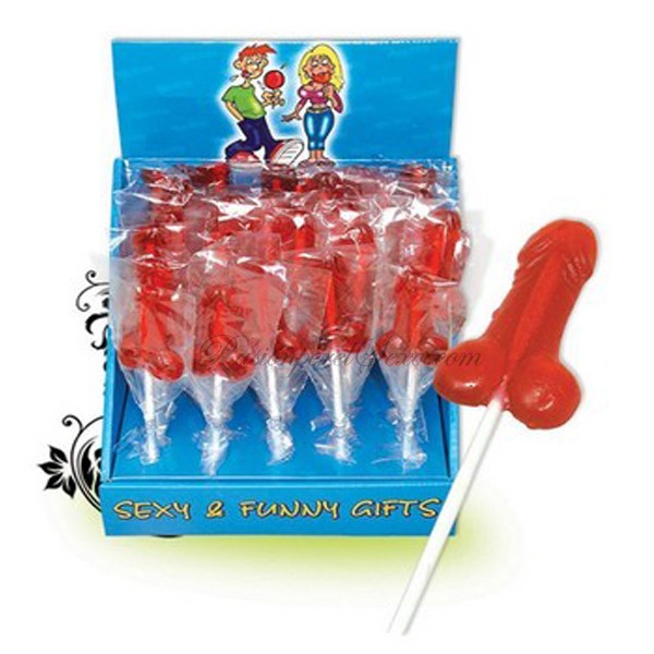 Piruleta gominola roja con forma de pito.