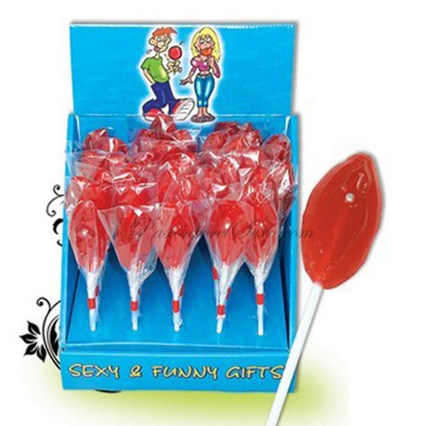 Piruleta gominola roja con forma de chichi.
