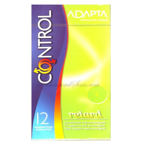 El especial diseño de Control Adapta Retard permite una perfecta adaptabilidad, haciendo tu relación sexual más satisfactoria. Gracias a su especial lubricación con benzocaina, se consigue un efecto retardante real, lo cual prolonga el placer y hace la relación más satisfactoria. Control Adapta Retard es un preservativo de látex de caucho natural de máxima calidad, fino, liso, anatómico, de lados no paralelos, transparente, lubricado y con depósito.
